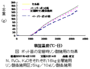 ペーパーポット苗を用いた根深ネギの全量基肥栽培において、定植直前に肥効調節型窒素肥料(細粒品)の育苗箱施用及び本圃のリン酸増肥により、定植後初期生育が向上する。 |