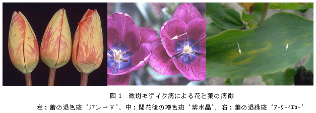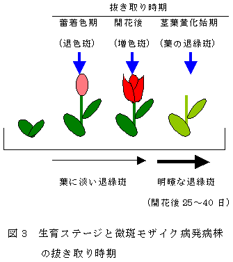 [キーワード]チューリップ、微斑モザイク病、病徴、発病時期 |