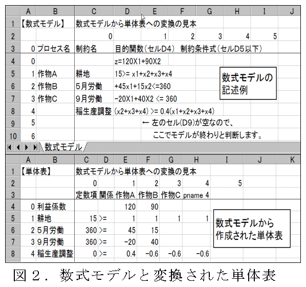 新しいXLPは、単体表を複数に分割して記述できる機能、線形計画問題の本来の記述形式である数式によりモデルの記述ができる機能、線形計画法やXLPの利用法を学習できる機能などが付加されて、利用の簡便さが向上している。 |