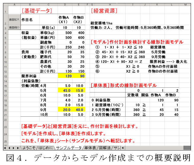 XLPは、1998年に公開して以来、農業技術の経営的評価、営農モデルの策定等に利用される線形計画法の計算プログラムとして、広く利用されている。今回は、利用場面の拡大や利用の簡便さ向上を図るため、(1)集落営農モデルや長期計画モデル等のプロセス数がExcelの最大列数を超える計画モデルの記述を可能にする、(2)線形計画法の初級者に理解しやすい、線形計画モデルの本来の記述形式である数式モデルを、XLPの計画モデルの記述形式として利用できる、(3)線形計画法やXLPの操作を学習できる、等の新機能を付加する。 |