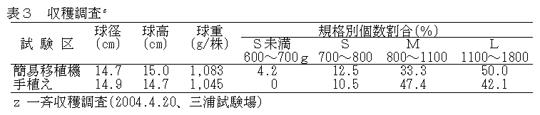 研究課題名:都市近郊野菜産地における大苗を利用した春キャベツの省力機械化作業体系の確立 |