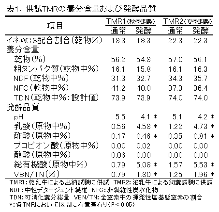 [キーワード]稲発酵粗飼料、TMR、サイレージ、乳用牛、飼料価値、乳生産、夏季 |