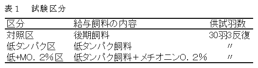 [キーワード]肉用鶏、低タンパク飼料、メチオニン、敷料水分、腹腔内脂肪 |
