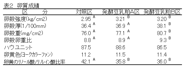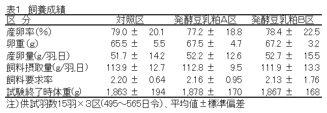 発酵豆乳粕給与による飼料利用性及び卵質の向上 |