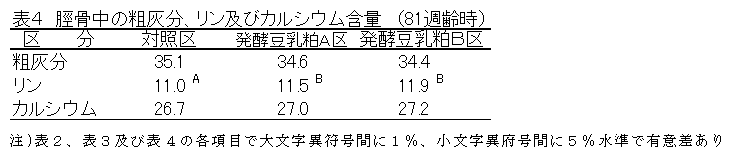 産卵鶏に発酵豆乳粕乾燥粉末を飼料の5%を代替して給与することにより、卵重が重く、卵殻質や脂肪酸組成の優れた鶏卵を生産でき、飼料要求率が約3%改善される。 |