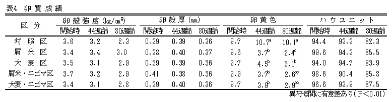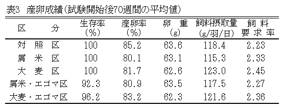 屑米、エゴマ等給与によるα-リノレン酸割合の高い鶏卵生産技術 |