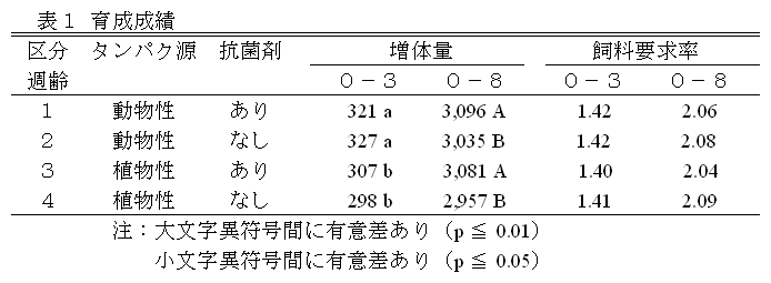 ブロイラー育成における飼料中タンパク質源の違い及び抗菌剤の影響 |