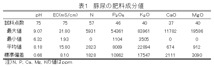 [キーワード]豚尿、窒素成分、電気伝導度、ブタ |