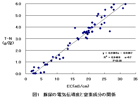豚尿を液肥として利用する場合に、窒素成分を電気伝導度によって推定することができる。 |