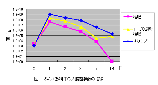 良く腐熟した堆肥中での大腸菌群の増殖は、オガクズ中よりも抑えられる。戻し堆肥として牛舎のベッド敷料に使用した場合、敷料中の大腸菌群数はオガクズを使用した場合よりも少なくなり、すでに良質な堆肥生産を行っている農家ではオガクズ購入のコストが抑えられる。 |