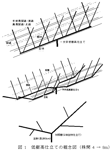 [キーワード]ウメ、仕立て法、低樹高、早期多収 |