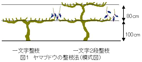 ヤマブドウの一文字2段整枝による垣根仕立て栽培と最適な雄株混植率 |