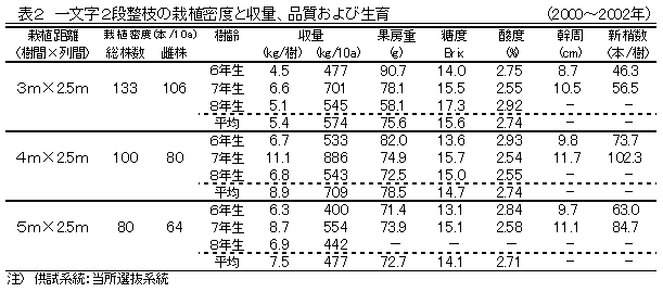 [キーワード]ヤマブドウ、垣根仕立て、一文字2段整枝、収量、雄株混植率 |