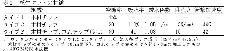 建設リサイクル法の施行に伴い建設廃棄物のリサイクルが義務づけられ、再生資材の利用方法の拡大が求められている。建設発生木材をチップ化した後ボード状に加工した資材(以下「植生マット」とする)の屋上緑化場面における利用の可能性を検討する。 |