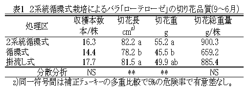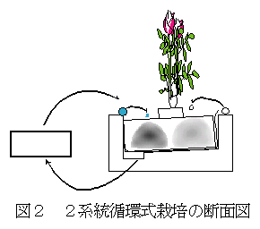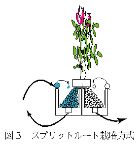 [キーワード]バラ、循環式養液栽培、2系統循環式、スプリットルート |