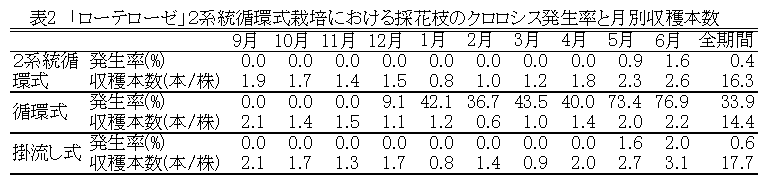 補給液用と循環液用の2つの系統で給液する2系統循環式養液栽培で、バラ「ローテローゼ」を栽培することで、養液を廃棄することなく、掛け流し式と同等の収量品質を得ることができる。 |