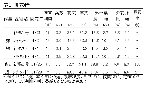 [担当]新潟農総研・園研セ・育種科 [連絡先]電話0254-27-5555 [区分]関東東海北陸農業・花き [分類]技術・参考 |