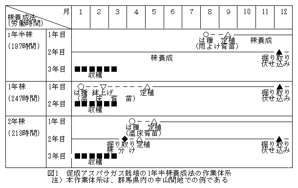 促成アスパラガス栽培の1年半株養成法 |