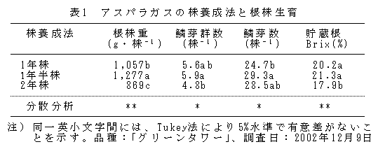 [キーワード]アスパラガス、促成栽培、1年半株養成 |