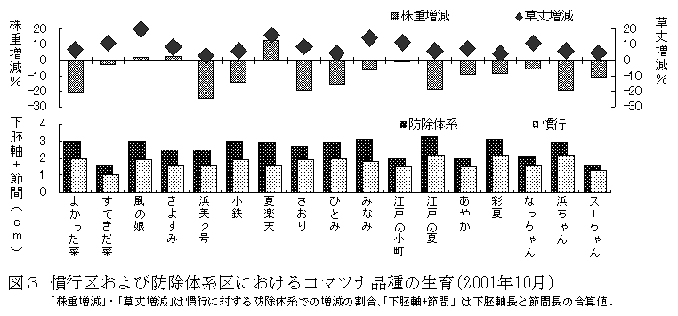[キーワード]コマツナ、UVカットフィルム、防虫ネット、太陽熱処理、品種比較 |