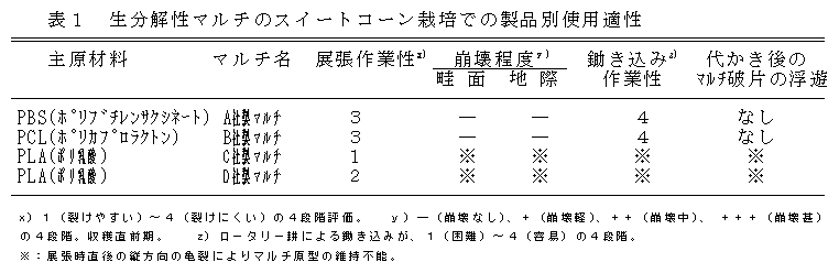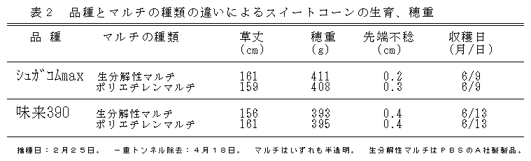 生分解性マルチの早出しスイートコーン栽培への利用 |