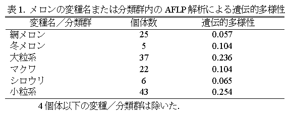 AFLP法による東・南アジアのメロン遺伝資源の遺伝的関係の解析 |