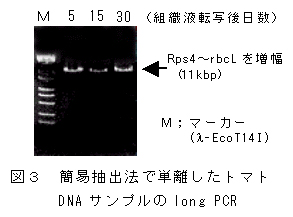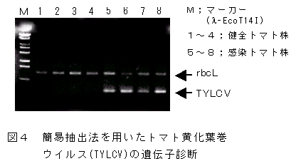 植物ウイルスの遺伝子診断、遺伝子組換え植物の検出、増幅DNA多型(RAPD)解析による品種識別など、PCRを利用した検定作業において、特に多検体を扱う場合はサンプルからのDNA抽出操作が煩雑となり、一連の作業の律速段階となる。また、植物にはポリフェノールや多糖類など、PCR反応やDNA抽出そのものを阻害する物質も多量に含まれているため、その精製度も問題となる。 |