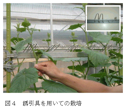 [キーワード]キュウリ、誘引、つる下ろし栽培、省力 |