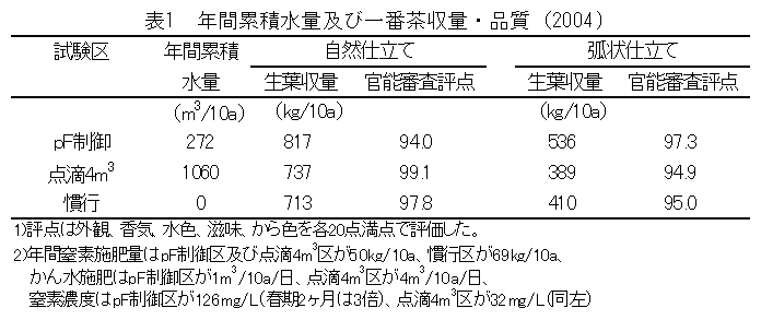 てん茶の点滴施肥栽培におけるかん水制御方式の導入 |