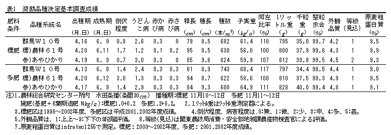 [キーワード]小麦、群馬W10号、早生、製粉性、多収 |