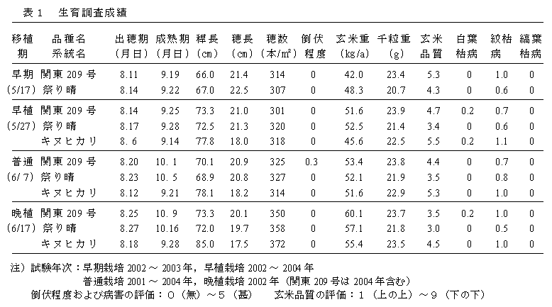 [キーワード]水稲、奨励品種、関東209号、良食味、中生品種 |