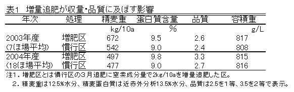 小麦「イワイノダイチ」の蛋白質含量向上のための施肥法 |