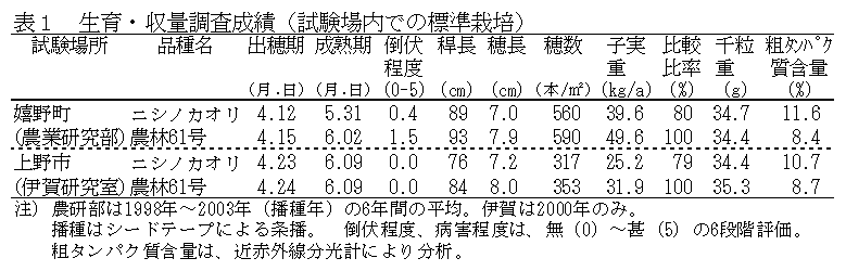 [担当]三重科技・農研・作物グループ、三重科技・農研・伊賀農業研究室 [連絡先]電話0598-42-6359 [区分]関東東海北陸農業・関東東海・水田畑作物 [分類]技術・普及 |