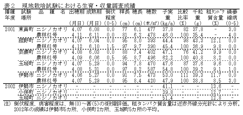「農林61号」と比較して、次の特徴がある。 |