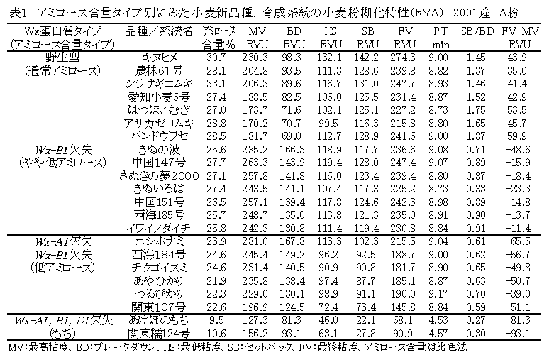 [キーワード]コムギ、RVA、加工適性、糊化特性、アミロース、分類 |
