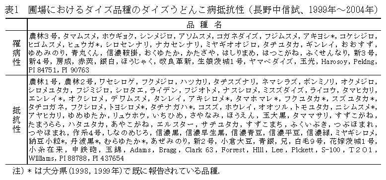 主要ダイズ品種のうどんこ病に対する抵抗性の差異と遺伝 |