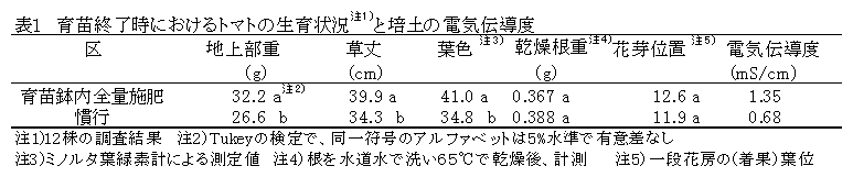 肥効調節型肥料を用いた20%施肥削減可能なトマト育苗鉢内全量施肥 |
