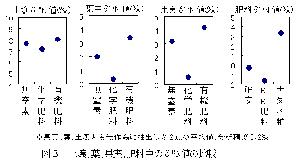 [キーワード]ニホンナシ「幸水」、δ15N値、有機質肥料、なたね油かす、長期連用 |