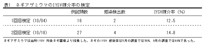 アイリスイエロースポットウイルスのネギ及びタマネギにおける感染状況 |