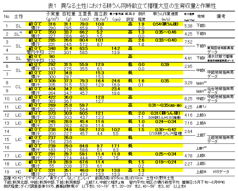 [キーワード]ダイズ、耕うん同時畝立、土性、地力、湿害、アップカット |