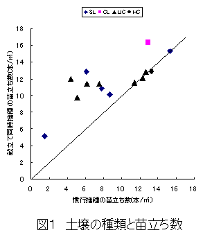 北陸地域の重粘土転換畑では、播種時期の湿害や過乾燥、生育前半の湿害により、ダイズの生育が停滞し収量が低下する。そこで、耕うん同時畝立て播種技術を開発し、新潟県上越地域の重埴土を主とする排水不良重粘土圃場を対象に、収量が増加するなどの湿害回避効果を確認した(平成15年度成果情報)。本技術の普及拡大のために異なる土性条件への適用拡大が強く望まれたため、栽培方法の異なる農家・生産組織自らが耕うん同時畝立て播種作業を行う現地実証試験を多様な土性と広範な地域で実施し、その結果に基づいて作業性、苗立ち、収量性などの効果が発現する土壌条件、発現効果の程度等を明らかにする。 |