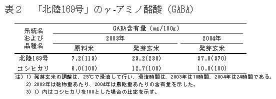 γ-アミノ酪酸(GABA)が多い発芽玄米用糖質米新品種候補「北陸169号」 |
