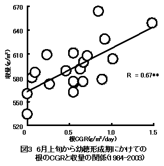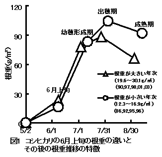 「コシヒカリ」の根系発達の特徴と収量との関連性 |