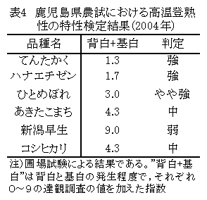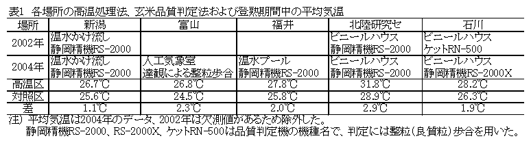 北陸地域を対象とした早生水稲の高温登熟性検定基準品種の選定 |