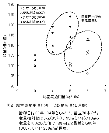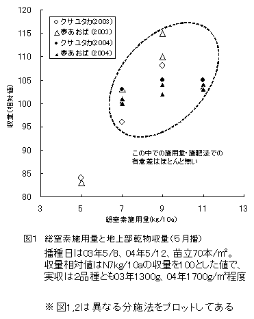 飼料用水稲「クサユタカ」「夢あおば」の直播での窒素施用量と苗立密度 |