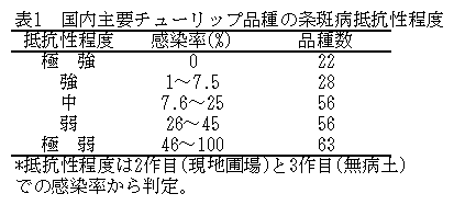 [キーワード]チューリップ、条斑病、品種、抵抗性 |