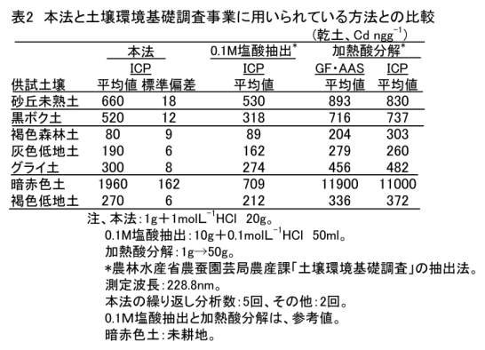 塩酸抽出・ICP発光法による農耕地土壌中カドミウムのプロセス定量分析 |