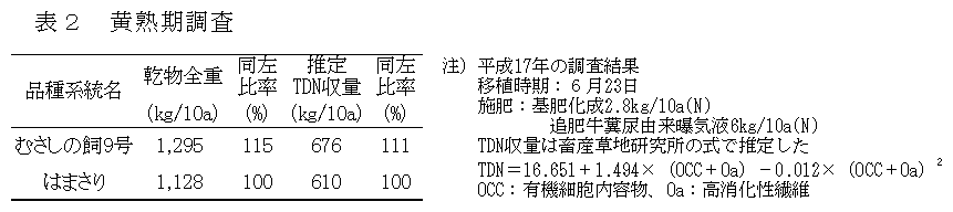[キーワード]飼料イネ、むさしの飼9号、晩生、多収 |