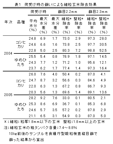 水稲の荷受け時篩い分けによる細粒玄米の除去 |