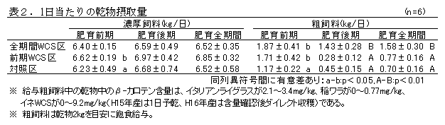 β-カロテン含量低減稲発酵粗飼料の黒毛和種去勢牛への肥育全期間給与 |
